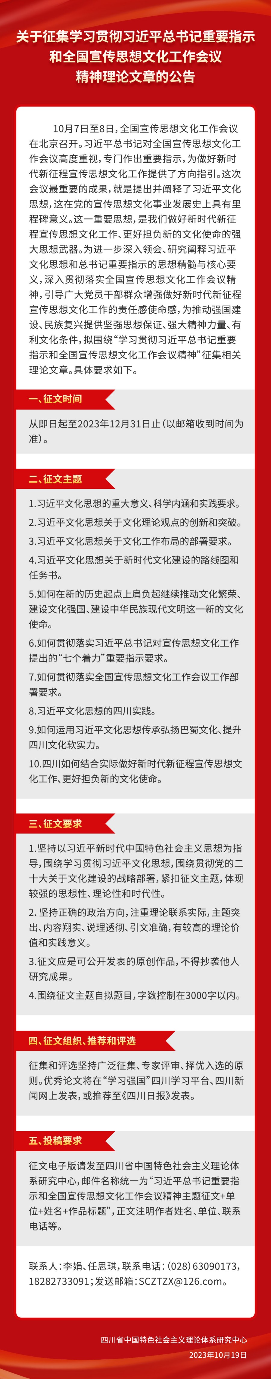 关于征集学习贯彻习近平总书记重要指示和全国宣传思想文化工作会议精神理论文章的公告
