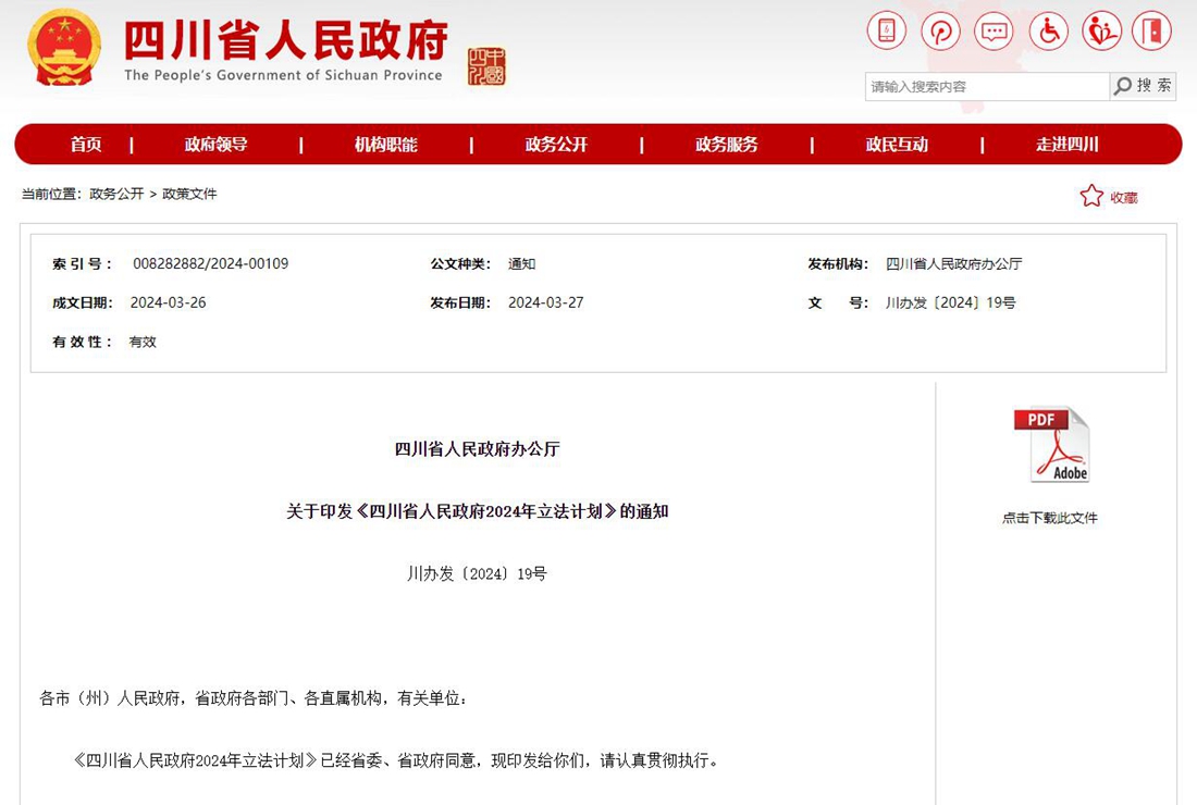 44件!四川省人民政府2024年立法计划出炉